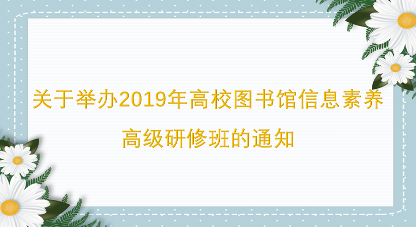 各有关单位:为更好地将新技术、新手段、新方法积极植入信息素养教育,紧跟时代发展步伐,更新教育理念,创新教育形式,推动高校图书馆信息素养教育的更好开展,在教育部学校规划建设发展中心指导下,我中心拟于暑假期间举办2019年高校图书馆信息素