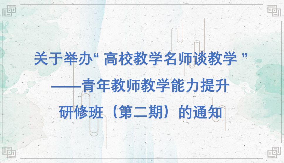 各有关高校:为进一步推进教师队伍教学能力的提高,共享优质教学成果,激发高校教师的教学潜能,增强教学实效,切实提高人才培养质量,中国现代教育研修中心拟举办“高校教学名师谈教学”——青年教师教学能力提升研修班线上研修班,诚邀各单位相关