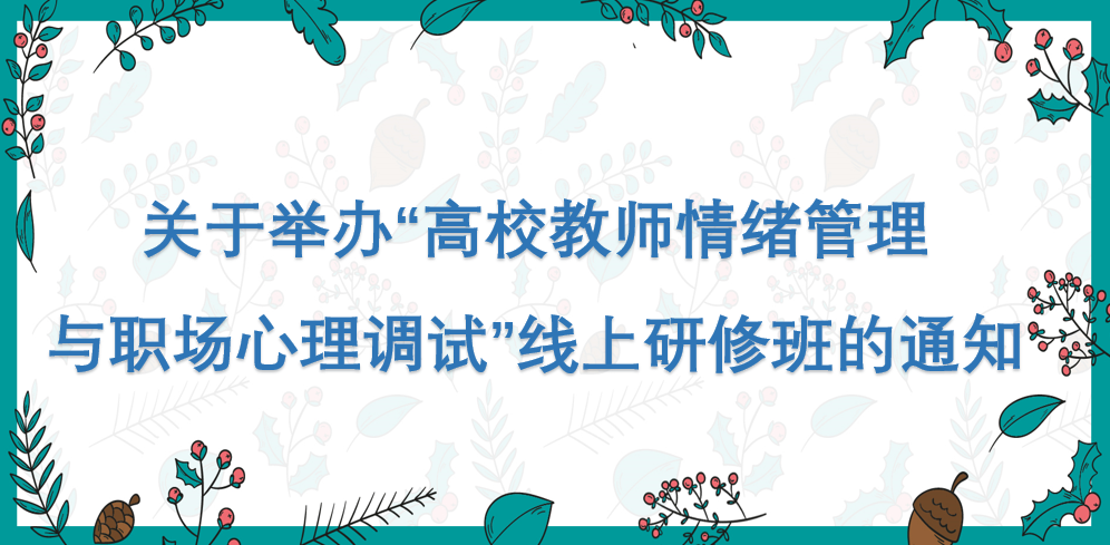 各有关高校:为深入贯彻《关于全面深化新时代教师队伍建设改革的实施意见》文件精神,进一步加强高校教师队伍建设,提升教师教书育人能力素质,增强心理认知与心理健康教育,中国现代教育研修中心拟举办“高校教师情绪管理与职场心理调试”线上研修