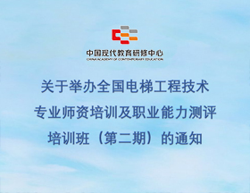 各有关单位:为进一步推动相关院校电梯工程等专业建设,促进“双师双能型”师资能力提升及认定,规范电梯工程等相关专业建设,以满足现代化校企合作的需求。中国现代教育研修中心联合中国建筑科学研究院建筑机械化研究分院,决定举办全国电梯工程技